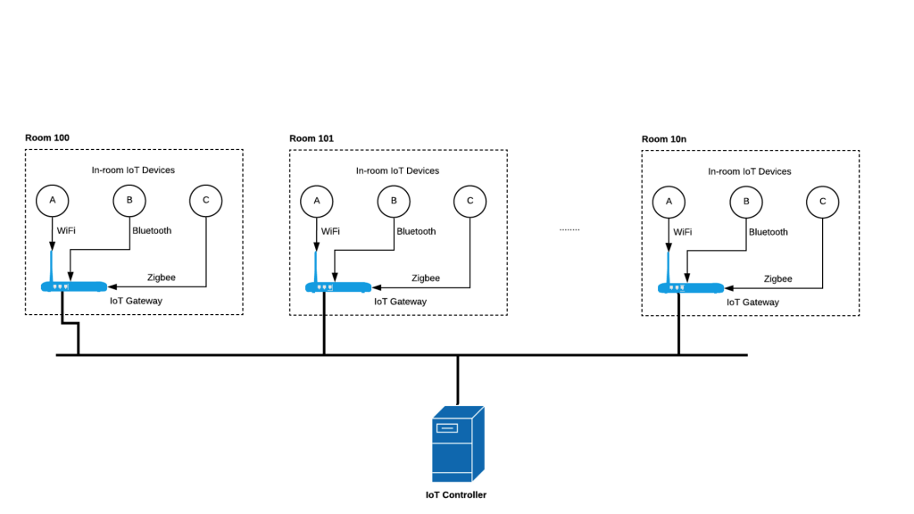 By leveraging both the Bluetooth and WAN connectivity built into the Android based OTT streaming solution, it was possible to add IoT gateway functionality to provide app and voice control of in-room devices such as lighting and heating.