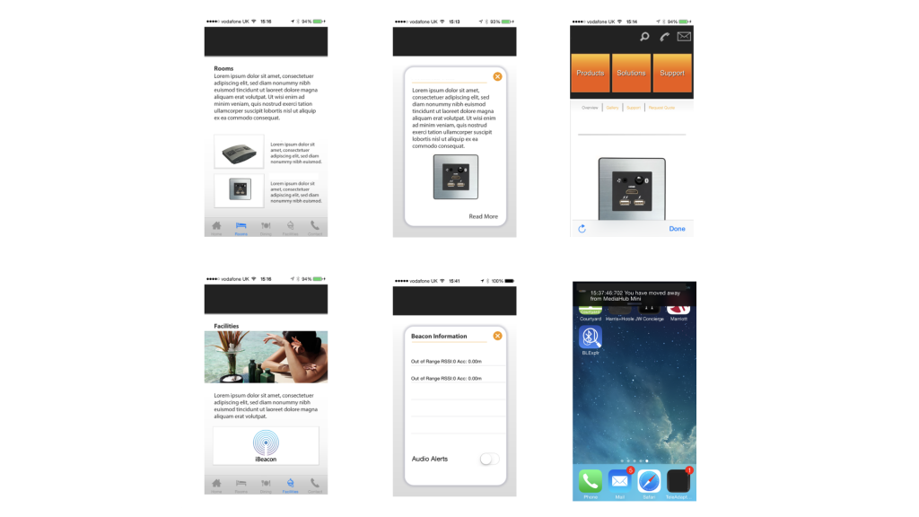 This demo app used BLE to present contextual information based upon proximity to a beacon. Furthermore the property is able to understand guest usage patterns in rooms and public areas to improve their future offerings.